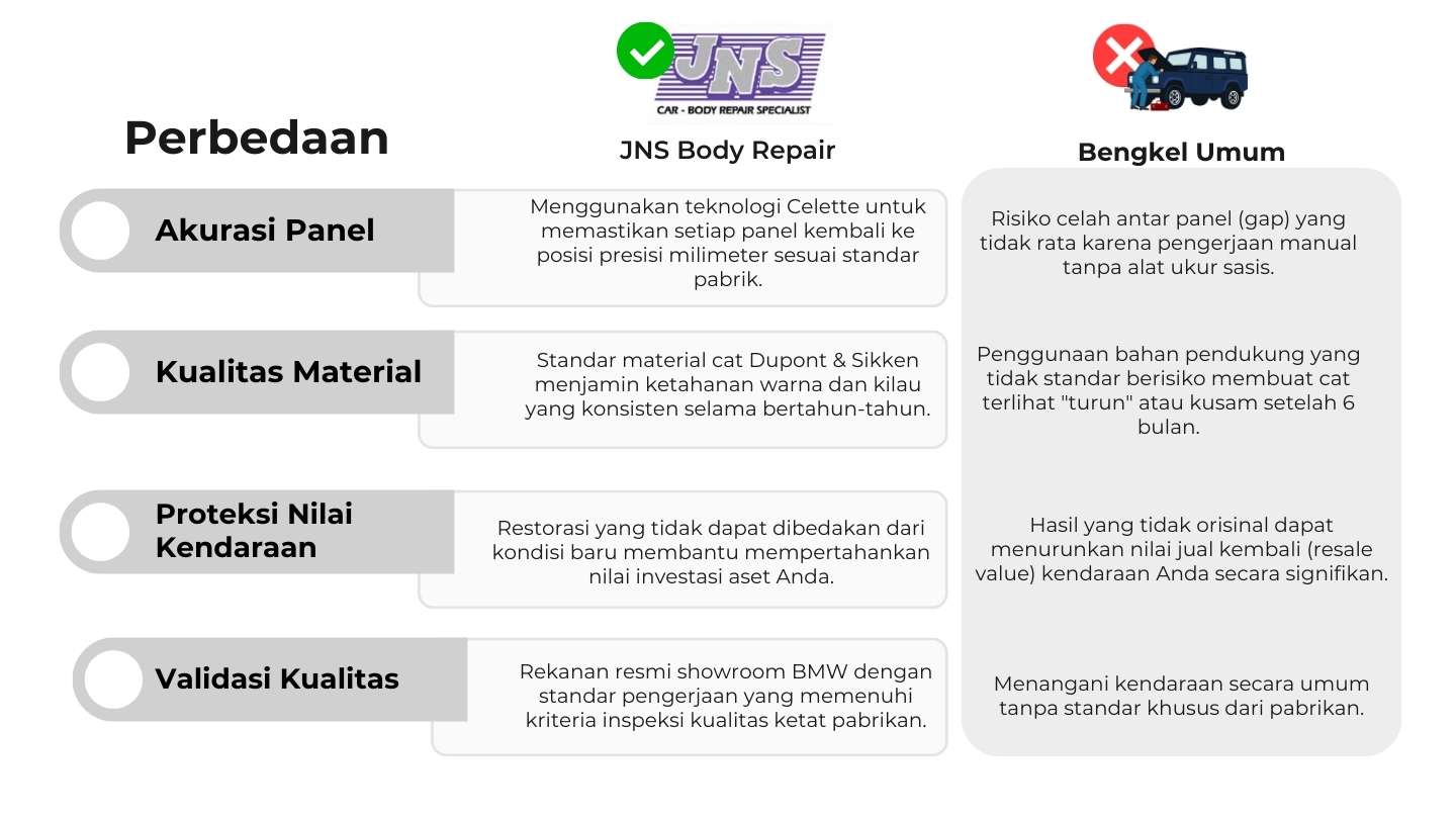 BAGUS SEKALI Berdasarkan 32 ulasan Diposting di Vwc JjTrustindex memverifikasi bahwa sumber asli ulasan adalah Google. Terima kasih, kendaraan jadi baru kembali. Mantap buat tim bengkel JNSDiposting di armand putraTrustindex memverifikasi bahwa sumber asli ulasan adalah Google. Bengkel JNS Jaya Motor Body repair specialistDiposting di Rina NasutionTrustindex memverifikasi bahwa sumber asli ulasan adalah Google. JNS Team yang Profesional , terima kasih banyak Pak ArmanDiposting di jemmy chendrawanTrustindex memverifikasi bahwa sumber asli ulasan adalah Google. hasil kerja nya rapih, system dan sop sudah ada,Diposting di Albert LaurentiusTrustindex memverifikasi bahwa sumber asli ulasan adalah Google. Pengerjaan tepat waktu. Respon cepat, hasil memuaskanDiposting di irman rakhaTrustindex memverifikasi bahwa sumber asli ulasan adalah Google. Bengkel JNS motor akan menjadi bengkel rekomendasi saya,karena hasil nya sangat bagus rapih bersih mobil seperti baru kembali dan lokasi bengkel tidak jauh dr jalan utama dgn area bengkel yg cukup luas ,bersih serta ramah pelayanan nya ,untuk SO nya pak arman past respon banget dan akan sy sarankan teman"dr kedutaan lain jika mau pilih perbaikan rekanan bengkel asuransi dgn JNS motor.trima kasihDiposting di Imam IamamTrustindex memverifikasi bahwa sumber asli ulasan adalah Google. Bengkel body repair JNS Pelayanan nya sangat memuaskan Hasil nya juga ok S.A nya juga sangat ramah & melayani customer dgn baik Pokoknya tidak mengecewakan deh top JNSDiposting di Tejiman SuryadiTrustindex memverifikasi bahwa sumber asli ulasan adalah Google. Good service and good quality. Thx pak Arman